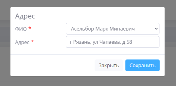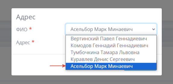 4. Перед вами появится форма с выбором контакта, к которому будет закреплен новый адрес: