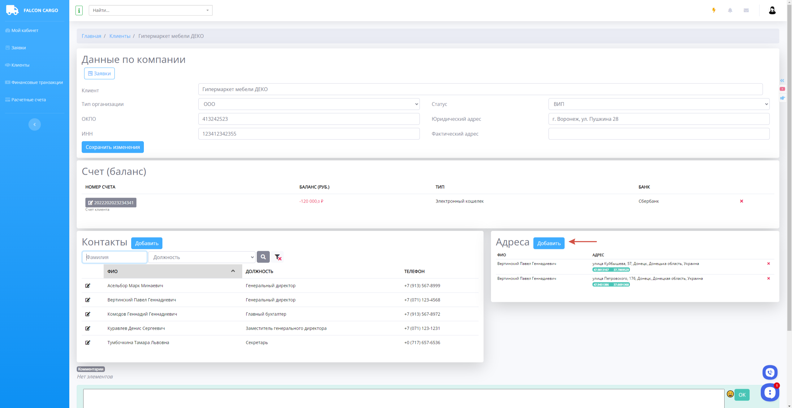 Менеджер может самостоятельно закрепить к компании клиента также сотрудников. Для того, чтобы это сделать, нужно перейти в соответствующий раздел Клиенты: