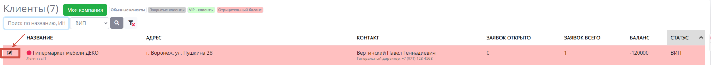 Как редактировать данные клиента?