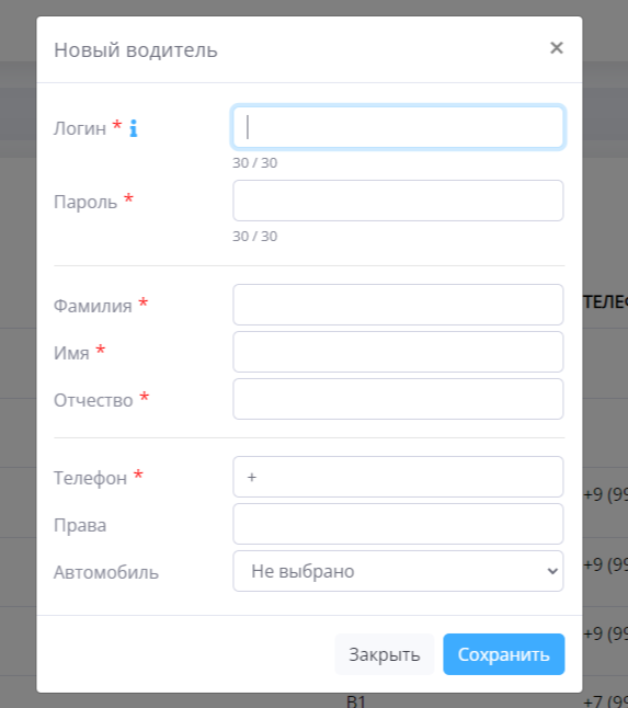 Для того, чтобы создать нового водителя, следуйте этим шагам: