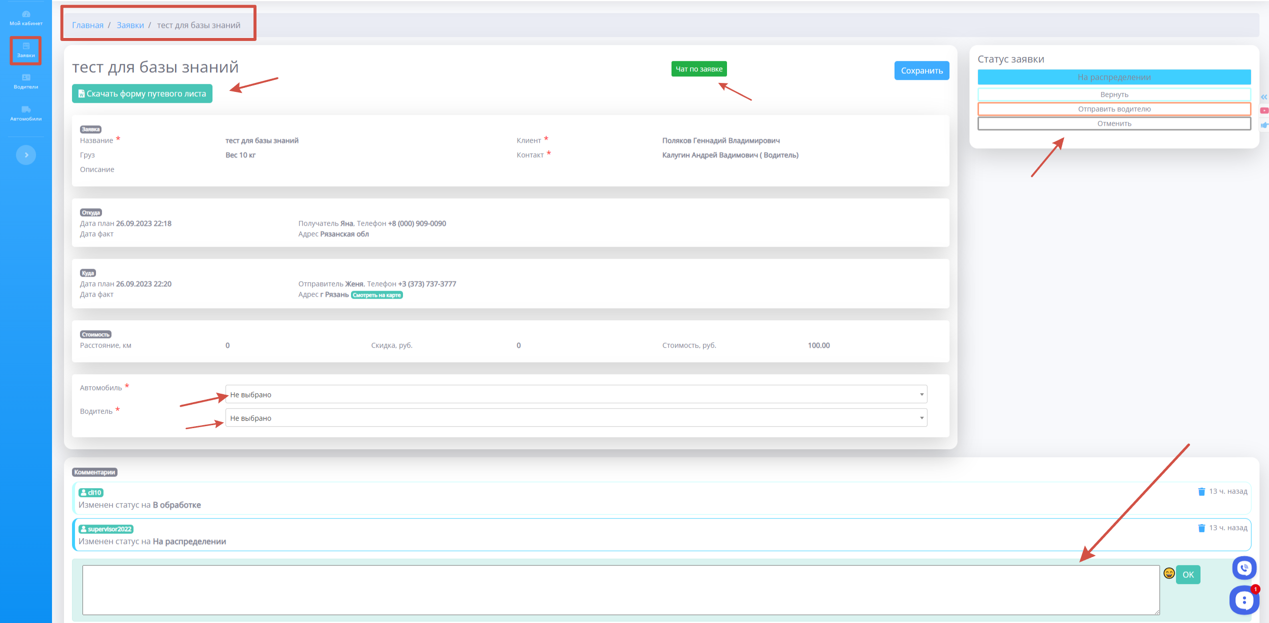 Кроме того, диспетчер может оставлять комментарии в карточке заявки или вступать в чат с клиентом и другими сотрудниками, которые также занимаются обработкой заявки. Это способствует эффективному общению и сотрудничеству между всеми заинтересованными сторонами, что помогает ускорить процесс выполнения заявки.