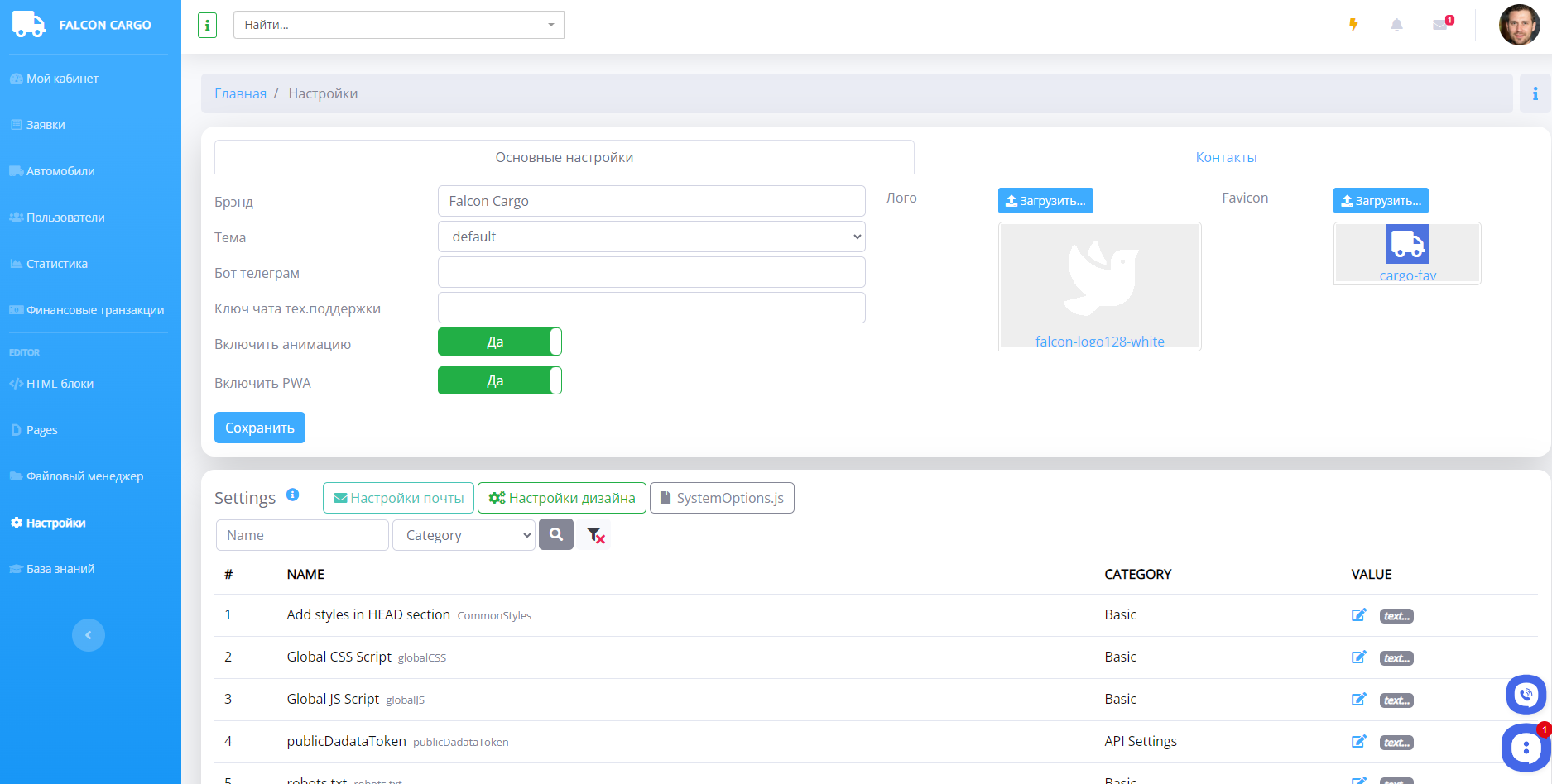 - Включить PWA - возможность скачать приложение сайта на рабочий стол
